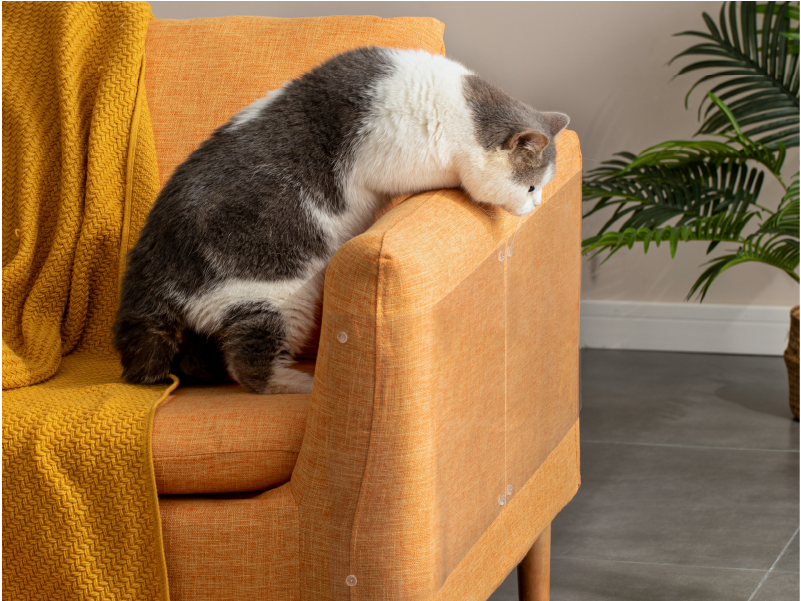 We're glad you asked! Leather, microfiber, and velvet are a bit like a tough nut to crack. Finding an adhesive that can withstand claws without causing damage is like finding a needle in a haystack. So, we recommend skipping those surfaces for now. To play it safe, always test a small patch before going all out. That way, you can protect your furniture without any unexpected surprises.